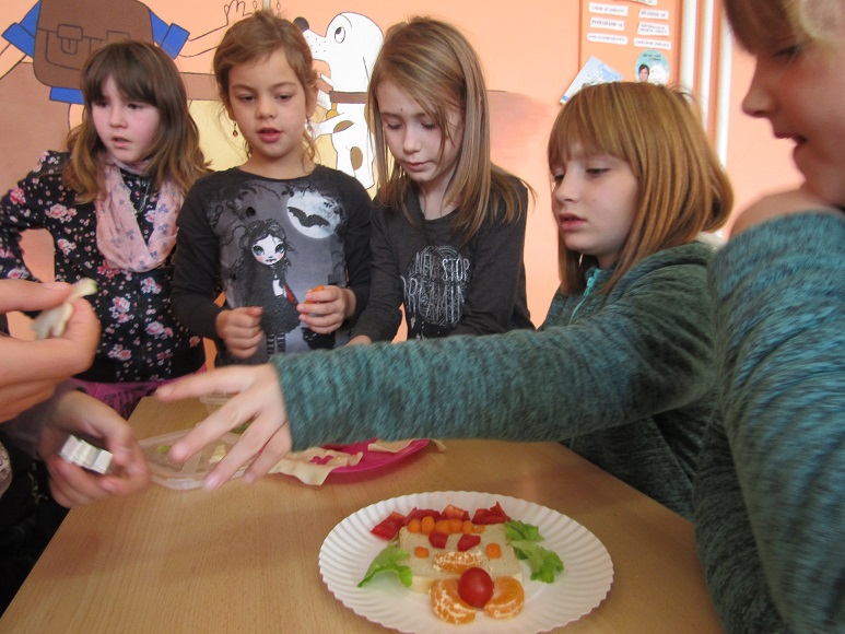 Na úvod byli žáci seznámeni se správným jídelníčkem a kvalitou potravin. Dále následoval popis jednotlivých potravin a jejich využití ve stravování. Na základě těchto informací si žáci pokusili sami zařadit na talíř pouze zdravá jídla. Pracovali ve skupinkách. Vytvořili si i zdravou snídani a svačinku a díky tomu si mohli osvojit základy správného stravování. Plnění jednotlivých úkolů bylo nejen zábavné,ale i velmi poučné. Posledním úkolem pro žáky bylo vytvořit pomocní ovoce a zeleniny libovolný obrázek na talíř. Program trval 2 vyučovací hodiny a všichni žáci byli aktivně zapojeni.